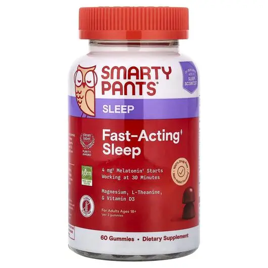 Поддержка сна Fast-Acting Sleep Gummies For Adults Ages 18+ Bluebe ... 60 таблеток, SmartyPants